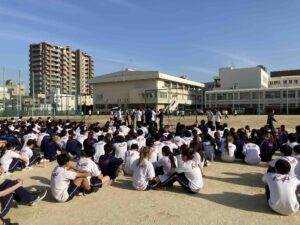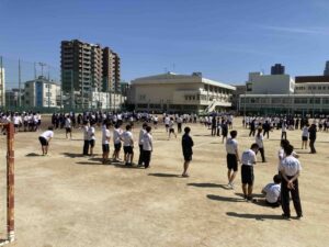 今年は、地震を想定して訓練を行いました。昨年度より3分早く集合することが出来ました。日頃より地震を想定して訓練を実施することが重要です。