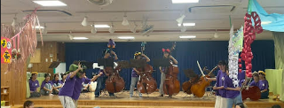 8月6日は東喜連保育園、8月7日はつるばみ保育園で園児のみなさんに向けて演奏をさせていただきました。「ルパン三世のテーマ」や「ゴジラテーマ」の演奏に合わせて劇をしたり、「にじ」の演奏に手話でダンスをつけたり、園児のみなさんに喜んでもらえるような演奏会になるよう工夫しました。楽器体験での園児のみなさんとのふれあいは、とても楽しい思い出になりました。