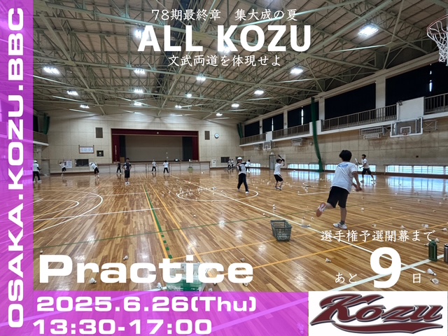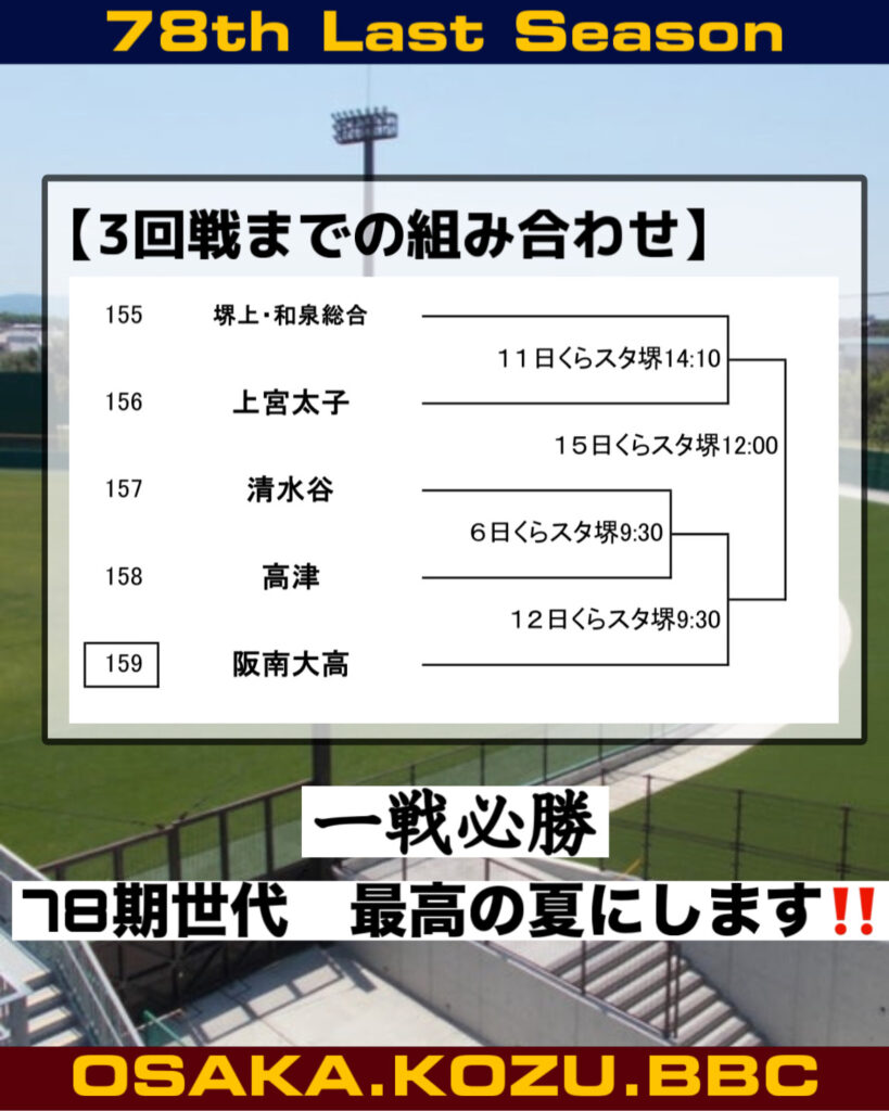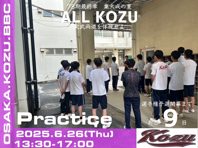 夏の大阪大会の開会式・初戦の日程が近づいてきました。異例の早さで梅雨明けし、連日厳しい暑さが続いていますが、全員揃って練習することが、大会直前のこの時期にはとても大切なことだと考えております。