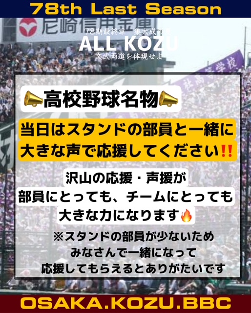 これから進路選択を行う中学生・保護者のみなさま、部活動ブログ・公式SNSをご覧いただいたみなさまに向けて、高津高校野球部の日々の取り組みについて紹介させていただきます。多くの皆様にご覧いただき、高津高校野球部の日々の取り組みについて知っていただければ幸いです。