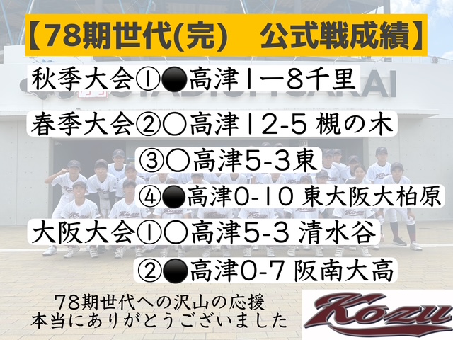 保護者の皆様、OBOGの皆様、現役の高津生、学校関係者の皆様、この大会を通して沢山の方に球場で、「バーチャル高校野球」で応援をいただきました。厚く御礼を申し上げます。78期世代の最後の勇姿を、これだけ沢山の人にご覧いただき、感謝の気持ちで一杯です。本当にありがとうございました!