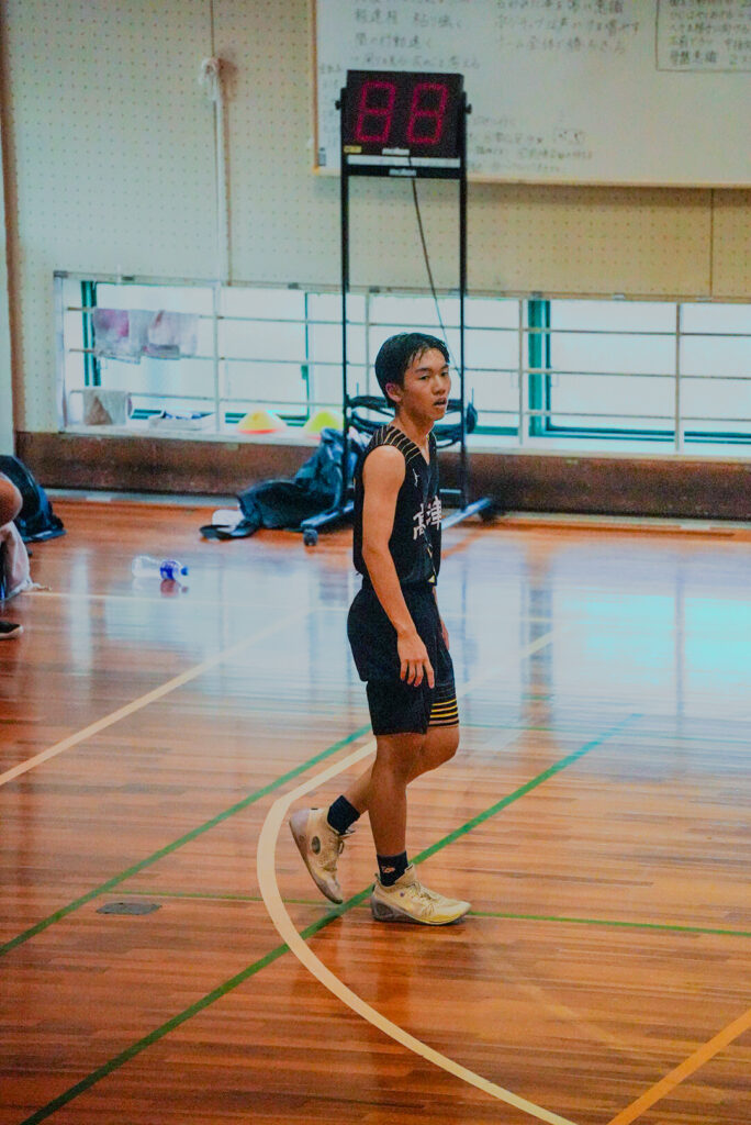 第2ピリオドは高津の先制から始まります。スティールから#5のナイスパスから#10のゴール下が決まり、#13のスリーも決まります。また、2ピリオドからディフェンスの精度も上がりました。少しでも甘いボール、緩いドリブルがあれば積極的に取りに行く様子が見られました。#13のナイスパスからの#7のショットが決まるなど、先程から上手く作られていたチャンスが、点につながりだし、残り5:50で19-18と逆転します。そして#13が2本目のスリーを決めますが、リリースの早い咲くやこの花さんの#4のスリーなども決まり、両者拮抗した試合となります。高津はインターセプトからのショット、ファーストブレイクで点を重ねます。#5の素早いボール運びから、#11のシュート、#5のパスカットからのドライブも決まります。咲くやこの花さんも着実に点を重ねられましたが、逆転をすることができ、32-30の2点リードで2ピリオドが終わります。
