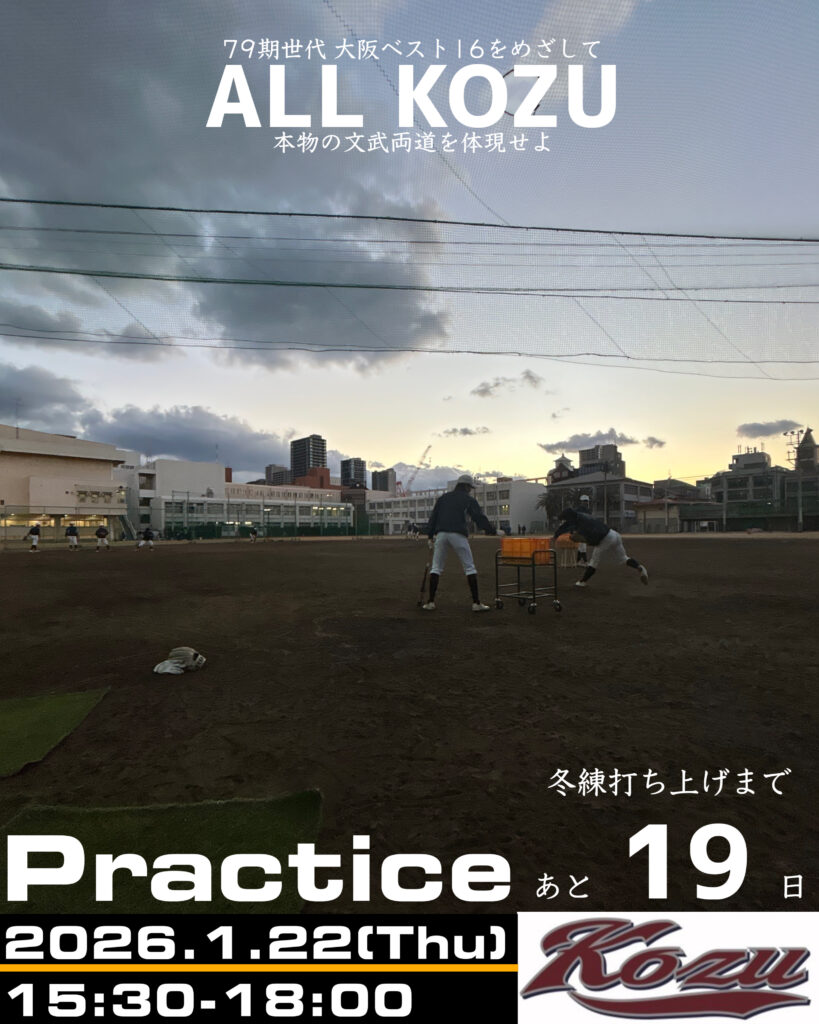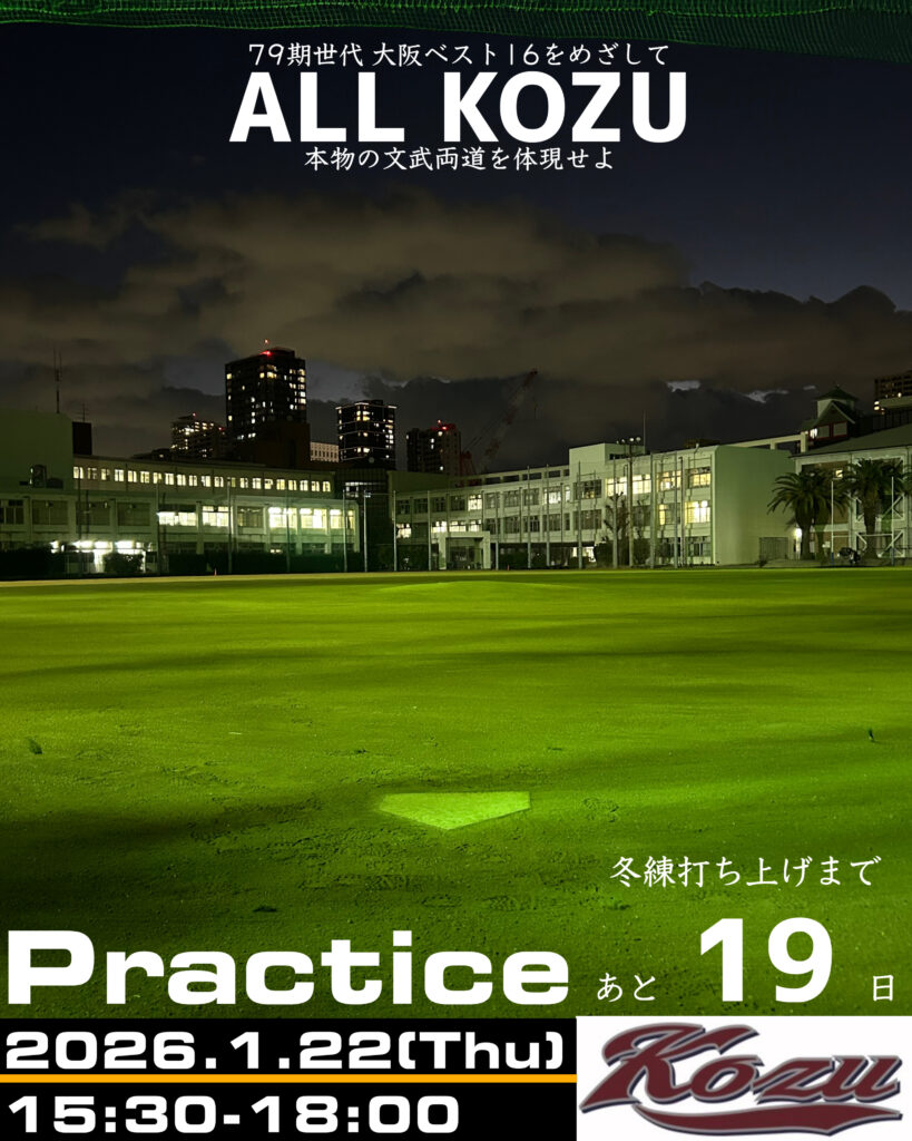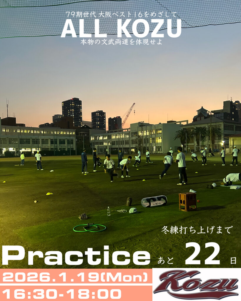 先週半ばから最強寒波が襲来し、全国的に厳しい寒さが続いております。大阪市内も夕方以降身体に堪える寒さ、冷たい風が強く吹くような日々が続きますが、少しずつ日の長さも感じるようになり、春も少しずつ近づいてきたように思います。テスト期間まで3週間を切りました。部員一人ひとりが、大きな目標に向かって熱い気持ちで取り組みを続けてほしいと思います!