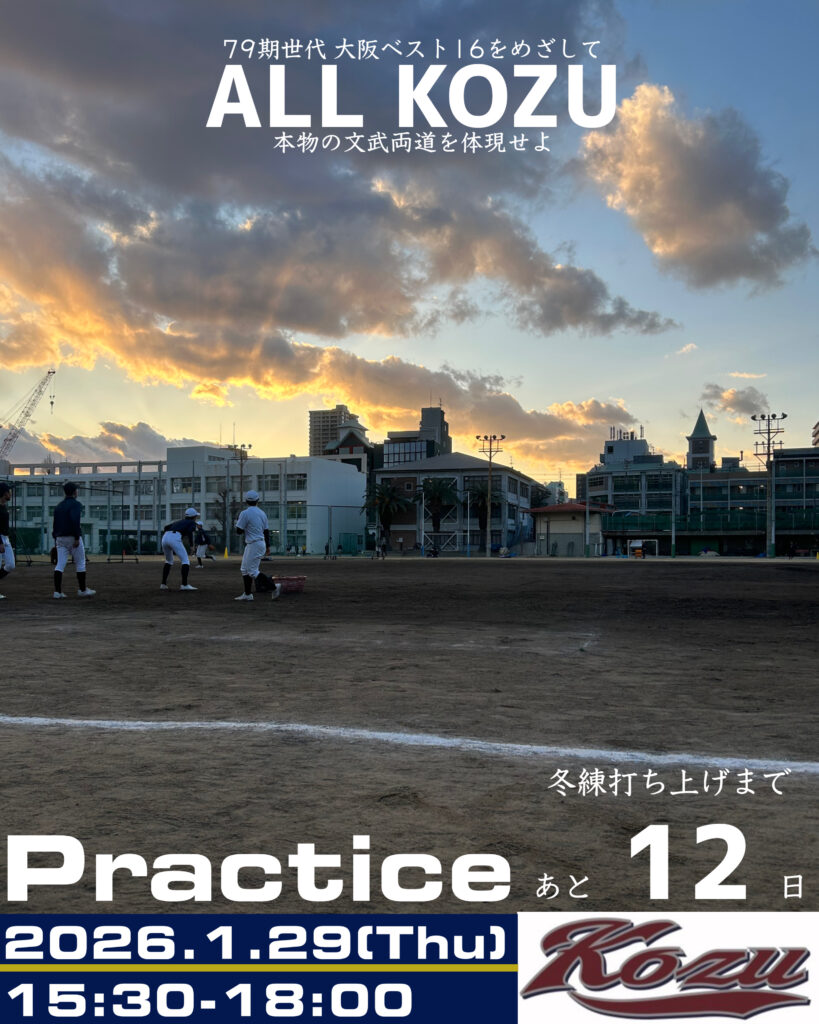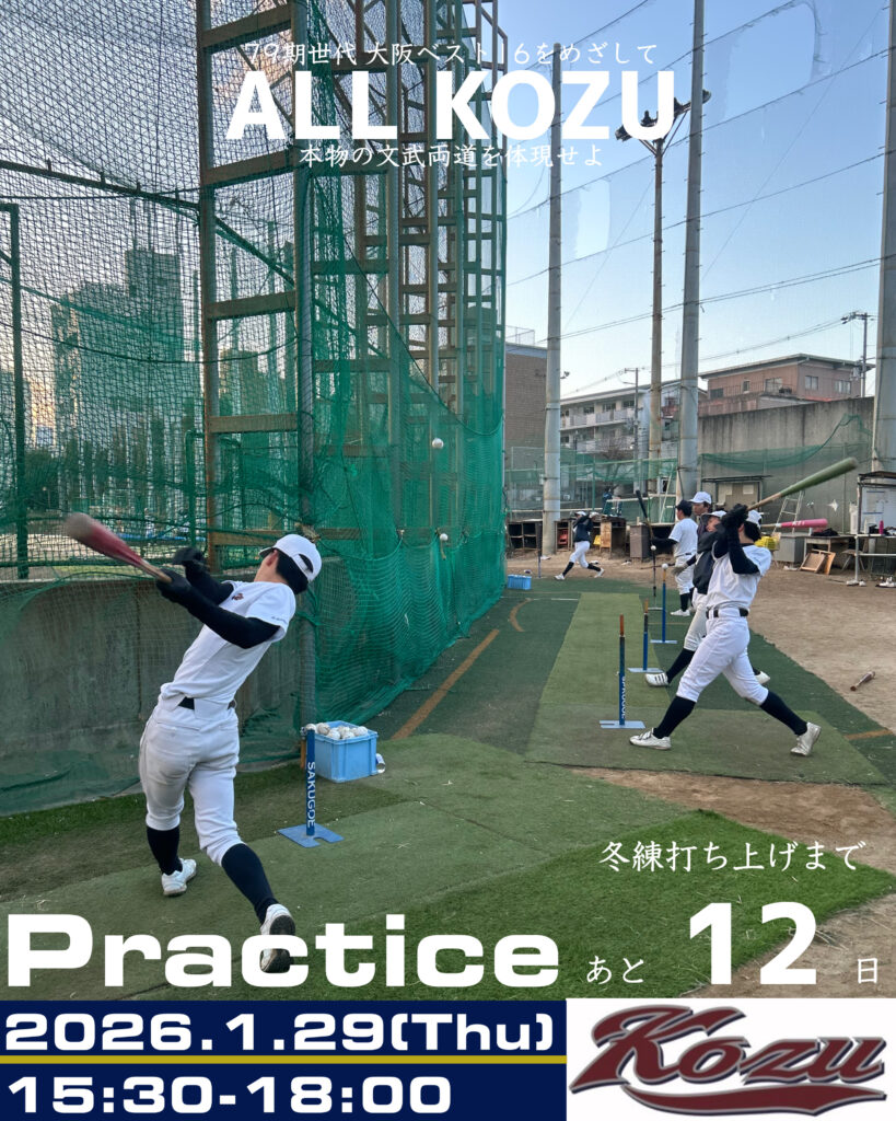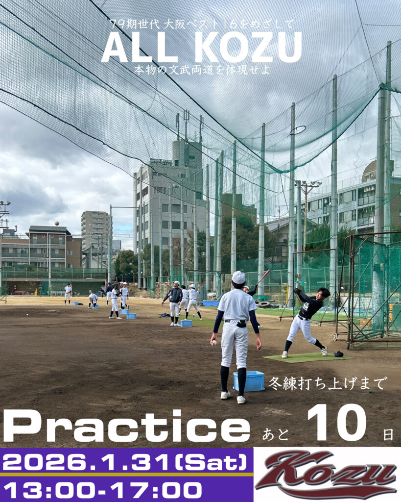いよいよ2月に入りました。チームとしての冬季練習はあと1週間ほど。2月11日からはテスト期間に入るため、約2週間全体練習はありません。先週土曜日は、チームを二手に分かれて、2年生は校外で野球講習会、1年生は高津グラウンドで練習を行いました。インフルエンザの流行や学級閉鎖の影響もあって、この日の練習は半分の12人で取り組みました。振り返ってみても昨年までの3年間は、2学年合わせて13人→11人→12人でやってきましたので、準備・整備・片付け等大変でしたが、少ない人数で練習を行うメリットを生かして、工夫しながら質も量もどちらもこだわって練習できました。平日短時間しか練習できないからこそ、週末に時間かけて練習する。練習することで生まれてくる強さこそが、公式戦の舞台での活躍に繋がります。最後の最後まで怪我や感染症に気をつけて、2月10日まで走り抜けていきたいと思います。