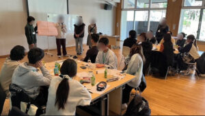 本校以外からも参加者を募って少人数のグループに分け、令和6年度は「約4名の生徒に2名の留学生」という配置になっていたので、わからない単語があった場合やどう表現していいかわからない場合などもすぐにフィードバックがもらえ、非常に充実した研修となった。