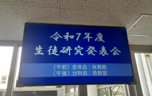 本日は、本校学習活動の軸である課題研究「高津LCⅡ」の成果を発表する「生徒研究発表会」。何度も書いているが、「LC」とは、本校の校風『自由と創造』=『Liverty&Creativity』の頭文字を取った探究活動。自らテーマを設定し、調査、実験、分析等を通じて、自分(たち)なりの正解、「最適解」を見出だす。この流れだけなら2年生の一年間の成果であるが、「高津LC」は、1年次の「高津LCⅠ」で探究の基礎、研究方法から論文作成まで、探究活動のノウハウを学ぶところから始まっているので、2年間の学びの集大成ということになる。