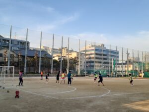 女子硬式テニス部は先輩後輩の良き関係のもと、順に一意専心でボールを打っている。男子も負けじと力強く打つ。ハンドボール部もサッカー部もラグビー部も野球部も1年生の体験入部に心踊り、良いところを見せようと少々カッコつけている。良いねぇ、まさに青春!