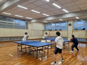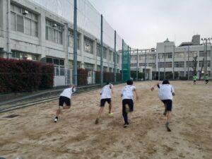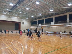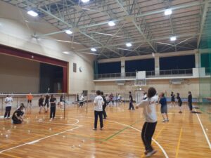 陸上部員が、せひ走るところを写真に取ってくださいと言うので、4人をパチリ。卓球部は2年生4人で頑張っており、1年生を待望する。バドミントン部は多すぎる人数のなか、工夫している。女バレ部は来週の試合に向けて必死にボールに食らいつく。