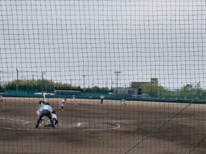 巻き返しを期した2セットめだったが、相手の勢いを止められず、14対25と力及ばず。あとの2試合に懸けるしかない。気持ちをうまく切り替えて臨んでほしい。果たして結果はいかに?と、残り2試合を残して(後の部員の報告によると、1勝2敗で2部残留とのこと)、野球部の春季大会3回戦へ。