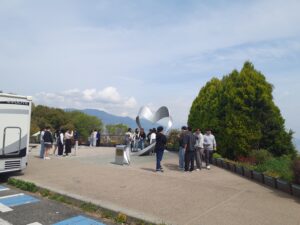 道中、大きな渋滞もなく、およそ予定通りの時間に大津サービスエリアに到着。トイレ休憩とはいえ、眺めの良い景色をバックに写真撮影する生徒もいる。テンションは少々高めだが、皆、高津生らしく、場をわきまえての行動。時間通りにバスに戻り、約20分後には大津プリンスホテルに到着した。