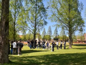 BBQとレクリエーション、園内散策は交代で実施。広く華やかな