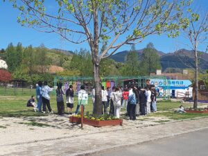 今日は待ちに待った、快晴の下でのBBQ。行きのバスでもクラス