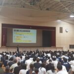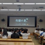 研究室訪問に向けた準備を進める2年生以外、1年生と3年生は、明後日からの夏休みを前に「学年集会」を開催した。どちらの集会にも参加したいが、残念ながら身体は一つ。それでも体育館と視聴覚室を行ったり来たりして、チームKOZUを味わった。