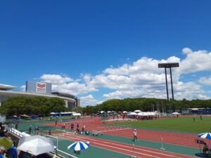 明日出場する選手たちが100%の力を発揮できるよう願っている。頑張れ、陸上部!