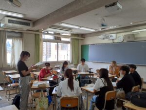 ちょうど英語で自己紹介しているシーンで、英語力に差はあっても、皆頑張って英語でコミュニケーションをとっていた。周りの者も、一生懸命話す仲間の声に傾聴し、お互いが相手を思う気持ちが顕著にあらわれていた。やはり英語は話してこそ、聞いてこそ。きっかけは自己紹介でも、そこから話題も広がり、楽しい会話が続いていた。自然と話せる環境に感謝。Make it Kozy!いいね、高津生!