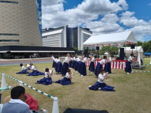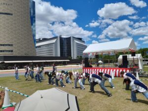 今日は並行して「なノにわ夏祭り」にて、ダンス部がダンスパフォーマンスを披露するということで、自転車で難波宮跡公園にある「なノにわ」へ向かう。真昼の太陽の日射しギラギラと照りつけるなか、それ以上にギラギラしたエネルギーが溢れるダンスを披露。日ごろ屋根の下でコツコツと練習で培った技術力と表現力を目いっぱい発揮した。保護者の方や一般の方々の大きな拍手も得られて生徒たちの笑顔もはじけた。