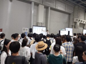 昨年は府立体育館での開催のため人数制限もあったが、今回事前予約者が17,000人と当日の来場者も加えるとおそらく20,000名ほどの大人数が参加したと思われる。本校の計12回のプレゼンテーションには、毎回120名を超える大盛況で、トータル1700名に高津高校の概要を知っていただいた。なかには、7月6日の第1回高津キャンパスツアー(オープンキャンパス)に申し込んだが締め切られていたという方も少なくなく、ぜひぜひ第2回以降に参加してくださいとお願いした。