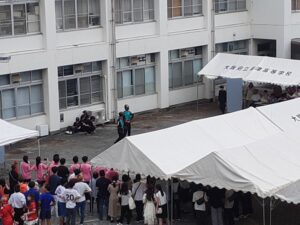 PTAの方々も、朝早くから高津グッズの販売の準備に来てくれた。昨年以上に気合が入っているようで恐れ入る。可愛くデザインしていただいた私のイラストが入った団扇とトートバッグはレア。こんなことがないと世に出てはいけない私の顔が生き生きと描かれている(感謝)。ボランティアの一環として購入いただければ幸いである。PTAの皆さん、明日も熱い応援をよろしくお願いします。