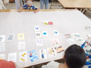 昨日は「百花繚乱」と表したが、本日は比較的「和」の場所を回った。美術部は、ポストカードを販売。1階廊下の奥の部屋ということもあり、人通りは少ないが、それでも、ちょっと覗いてみようと、家族連れが見学に来る。手作りのポストカードを見ての第一声はみな、「可愛い」だ。繊細なデザインに優しさを感じる。購入したお客様に、部員が優しく「ありがとうございます。」と対応。いい雰囲気だ。