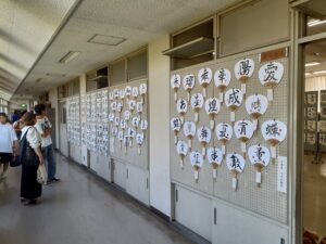 中庭での書道部のダイナミックなパフォーマンスもよいが、やはり授業で学ぶ個々の丁寧な作品も見ごたえがある。経験、未経験問わず、先生の指導をきちんと守りつつ筆を執ったであろうことが伝わる。