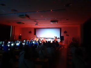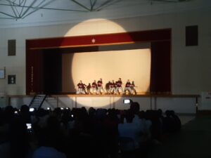 明るい中庭とは対照的だが、視聴覚室では色鮮やかな照明の中、軽音楽部がそれぞれのバンドで元気に演奏。会場は大盛り上がり。そして、イベントの締めは、体育館でのダンス部と中庭での「Kー1グランプリ」。実はダンス部1年生の動画にこっそり出演したのだが、「Kー1」審査員と時間が重なったので一時お預け。「Kー1」は、昨年にも増して、実に漫才らしい漫才を6組が披露。観客も爆笑のうちに、あっという間に終了。6組ともネタもしゃべりもよくできていて、結果は昨年と同じく私の前の審査員4名で2組に2票ずつ。責任ある私の1票はコンビ名「die or diet」の二人に投じた。結果は結果とするも、皆頑張った。時間の関係で、コメントはカットされたが、皆、言葉遊びを生かしたクレバーでスマートな漫才だった。Good Job!