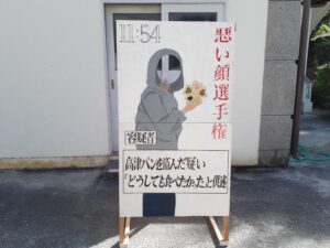 列のすぐ後ろは、女子中学生の2人組。後で知ったが、一人のお兄ちゃんが高津生。ふと見ると、私のイラストが入った団扇を持っている。胸にぶら下げた札を見せ、「よー似てるやろ?」と言うと、びっくりした様子。「再来年、高津においでや」「頑張ります!」と言っているうちに順番が回ってきた。せっかくなので、これもご縁やね、と言って余っていた金券で一緒に美味しいお茶とお菓子をいただく。お礼に?かどうかは知らぬが、「写真撮らせてもらっていいですか?」と自分の団扇を私に持たせてパチリ。「再来年待ってるわ!」と強く伝えた。ということで、今日は、「和」を堪能。