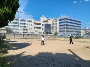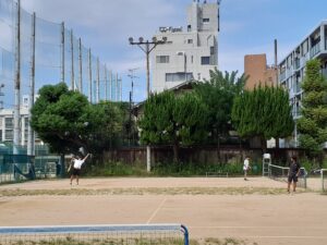 ラグビー部はOBも来てくれている。先輩の声は、同じ釜の飯を食った仲でもあり、リアルでありがたい。テニスコートでは男子硬式テニス部が大阪府予選の1回戦。精華高校とシングルス3戦とダブルス2戦を戦った。それぞれ一矢は報いたが、残念ながら敗退。試合終了後も、次こそは、と居残り練習。その横では女子ソフトテニス部が3人で一生懸命頑張っている。時間があれば、2対2で試合もできるのだが、「すまん、今日は時間ないねん」と声をかける。