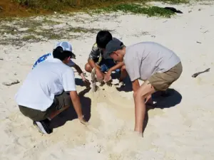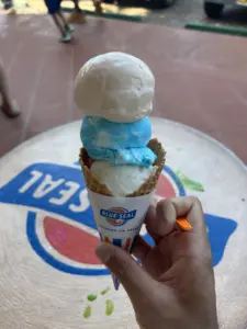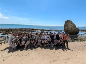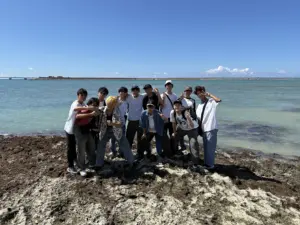 美浜タウンリゾート・アメリカンビレッジは、沖縄県北谷町美浜にあるリゾート地区。アメリカ合衆国の雰囲気を模したショッピング、エンターテイメント・エリアになっている。域内に入ると、アメリカングッズや沖縄のお土産がたくさん。生徒たちに一番人気のOrionビールデザインのグッズも思っていたよりも多くの種類がある。確かに暑さはきつかったが、それも忘れて雰囲気を楽しんでいた。