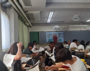1年生の英語は、ネイティブの先生2名の掛け合いでの英会話から始まり、長文、意見交換へ。ペアワークは同じ相手ではなく、相手を数名変えての会話。「夏のスポーツと冬のスポーツのどちらが好きですか?」「本校体育祭の良い点と悪い点は?」などの質問で対話する。生徒たちもスムーズに楽しく会話を楽しんでいる。高校生の英語力でよく言われるのは、「即興力」の不足。校外の発表会においても、プレゼンテーション能力は向上し、英語での説明も流暢だが、質疑応答の際の対応に難がある、と。準備したことはできるが、即興で応えることができない、と。もちろん、専門用語が理解できなかったり、大学の先生の質問に緊張したりというのはあるが、何とかその「即興力」を上げたいと思う。場数を踏むしかないのなら、普段からそういう訓練が必要なのではないかと思う今日この頃である。