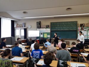 本日は、オランダのGroenewald校(学校HPはこちら→https://www.groenewald.nl/)との交流を行った。