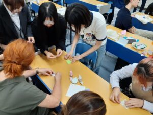 放課後は、部活動見学とESS部員との交流。先日のインドからの訪問時と同じく「折り紙」を伝授し、茶道室では「茶道」を体験。19年前と比較すると国際交流の形も大きく変わり、盛りだくさんの体験コースに皆さん大満足された。今後も交流が続くことを願う。Groenewald校の皆さん、良い時間をありがとうございました。明日は京都、明後日は広島を訪れるそうですが、お気をつけて、Have a nice trip!