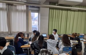 各教室では、だいたい室内で3~4箇所に分かれ、1回4分で発表する。その後は3分の質疑応答で、これを何回か繰り返す。質疑応答では、聞く方も何か質問せねばならない。質問することで「質問力」が鍛えられるし、答える方は「即興力」が身につく。すぐには難しいので、何度も繰り返すこと、場数を踏むことが重要だ。