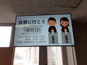 近々選挙があるわけではないが、「投票へ行こう!」というのが、今の高津高校の声掛け。というのも、現在、先週23日(木)の後期自治会役員選挙の投票期間中であり、本日が投票最終日となる。最近は、投票やアンケートなど様々な意見集約にGoogle Formが使用されており、スプレッドシートにより、その回答状況が見える化されている。もちろん個人情報の管理が前提。投票率が見えるため、具体的な声掛けができる。一人一人が参画意識を高めて、ぜひ清き一票を!