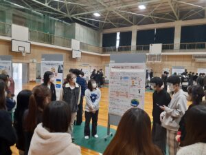 ポスター発表の良いところは、全グループに発表する機会があること、聴者は興味のある発表をいくつも聴けること、そして、発表者と聴者の距離が近いことで質問がしやすく、学びがより深まることにある。後半の時間は1年生も参加するため、先輩としての見本を示さねばならない。昨年得た気づきを今日の発表に生かしてもらいたい。1年生も、来年は自分たちが、という気持ちで聞いてくれたら何よりだ。
