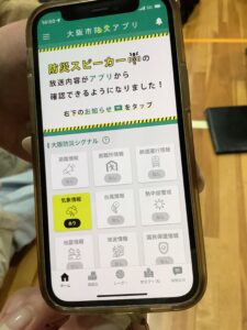 今回の防災教育では、台風や豪雨などの気象災害にどう備えるかを学びました。災害警戒レベルの意味、低気圧・高気圧の中で風がどのように動くのか、そして、過去の大きな台風から学べることなどをわかりやすく説明しました。最後には「大阪防災アプリ」を実際に見ました。