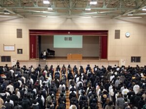6限体育館にて音楽選択生(1年生)による発表が行われました。