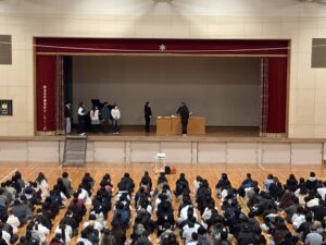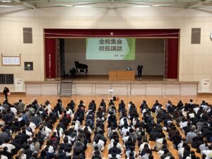 本日、全校集会を行いました。1・2年生はその後、宿題考査があります。3年生は今日から授業がスタートです。